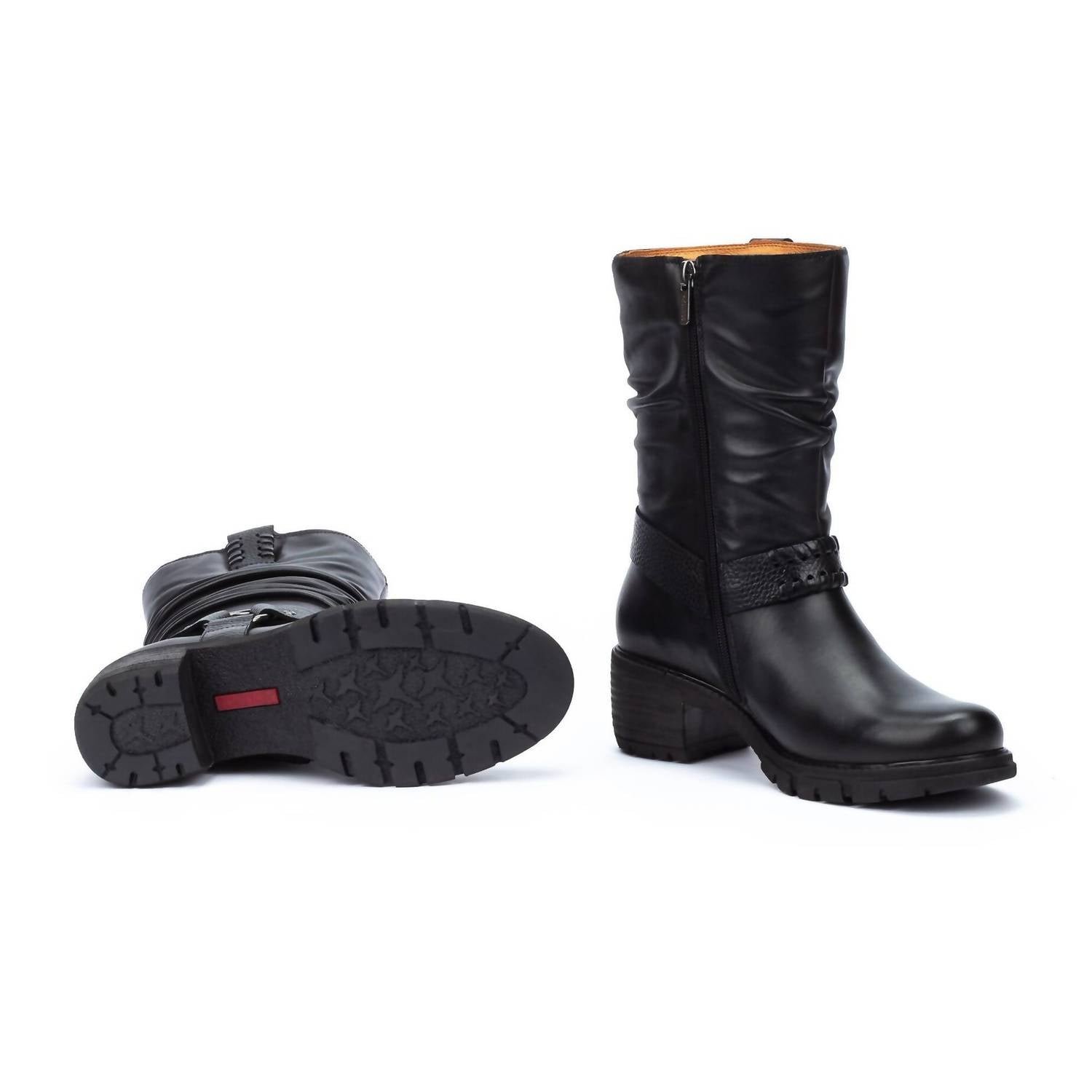 Say hello to the perfect, most versatile boot. The ankle height makes this style easily transition from day to night. Wear them with your favorite skinny jeans and tee for a more laid back look, or pair them with your favorite mini dress and jacket for a night out on the town.Step into effortless style crafted for both comfort and modern flair. Black leather ankle boots feature a slouch shaft, chunky block heel measuring 5.2 cm (2.05”), and a semi-round toe. upper is 100% calfskin leather, with a 75% textile and 25% pig skin inner lining, and a 100% synthetic sole. Easy to put on with a zip closure. promise extra comfort and a sustainable LWG certification. Shaft measurements stand at 32 cm (12.6”) in contour and 19.5 cm (7.68”) in height.