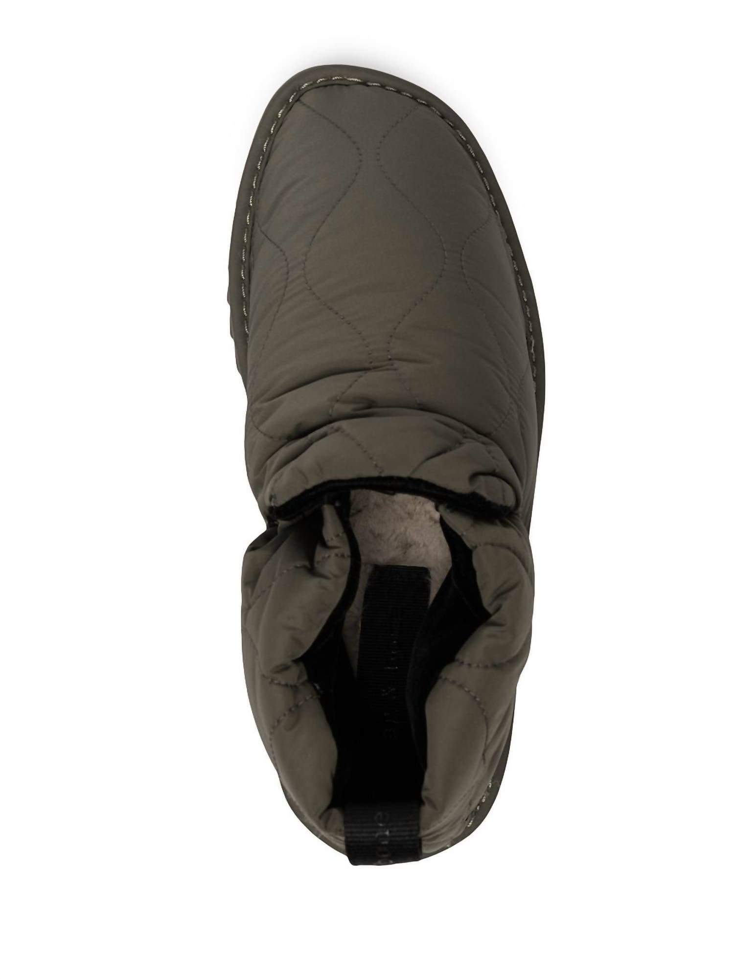 Say hello to the perfect, most versatile boot. The ankle height makes this style easily transition from day to night. Wear them with your favorite skinny jeans and tee for a more laid back look, or pair them with your favorite mini dress and jacket for a night out on the town.recycled polyester. round toe. slip-on style. branded insole. flat rubber sole