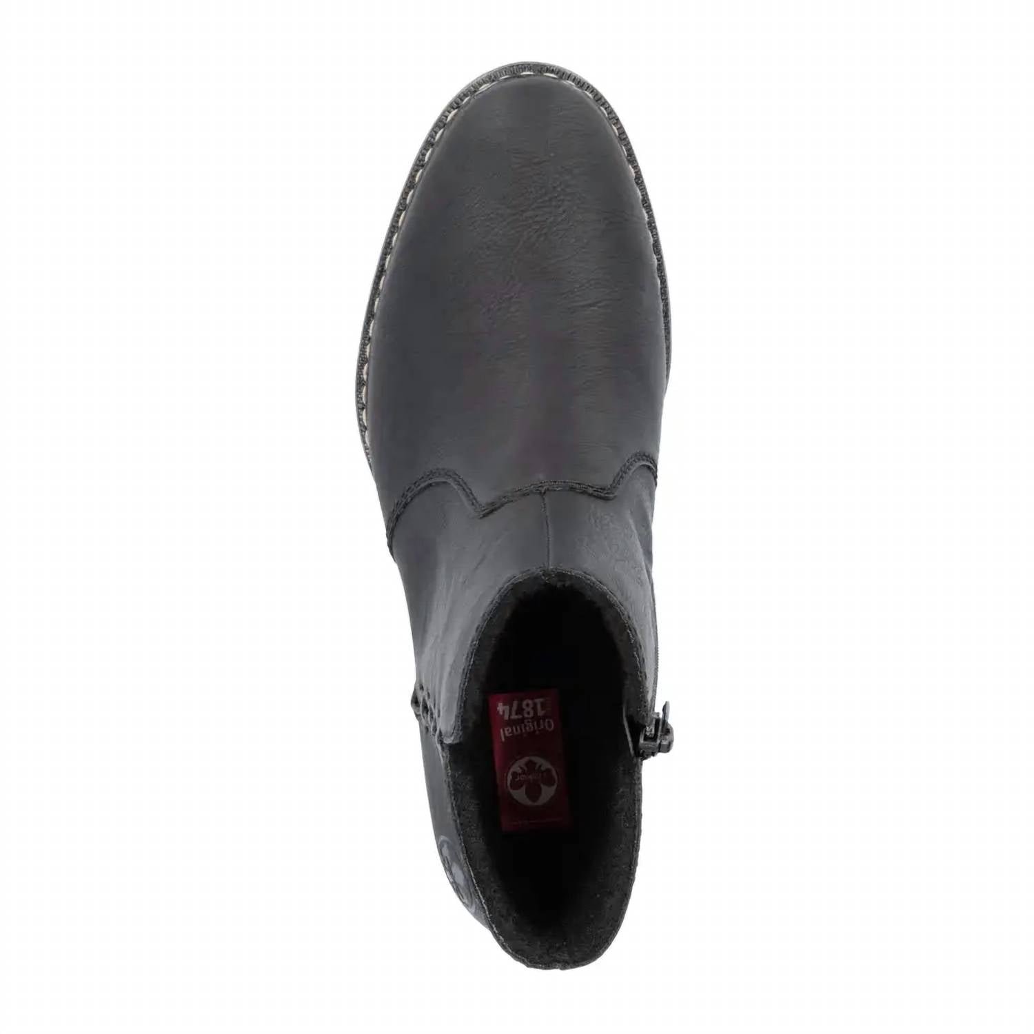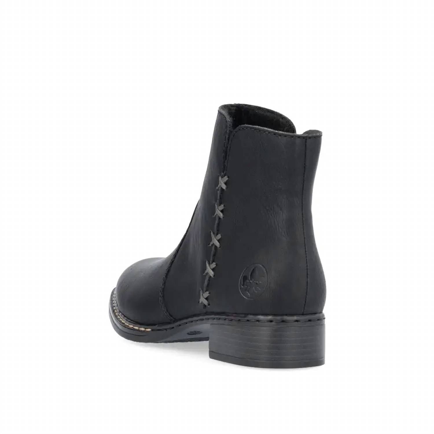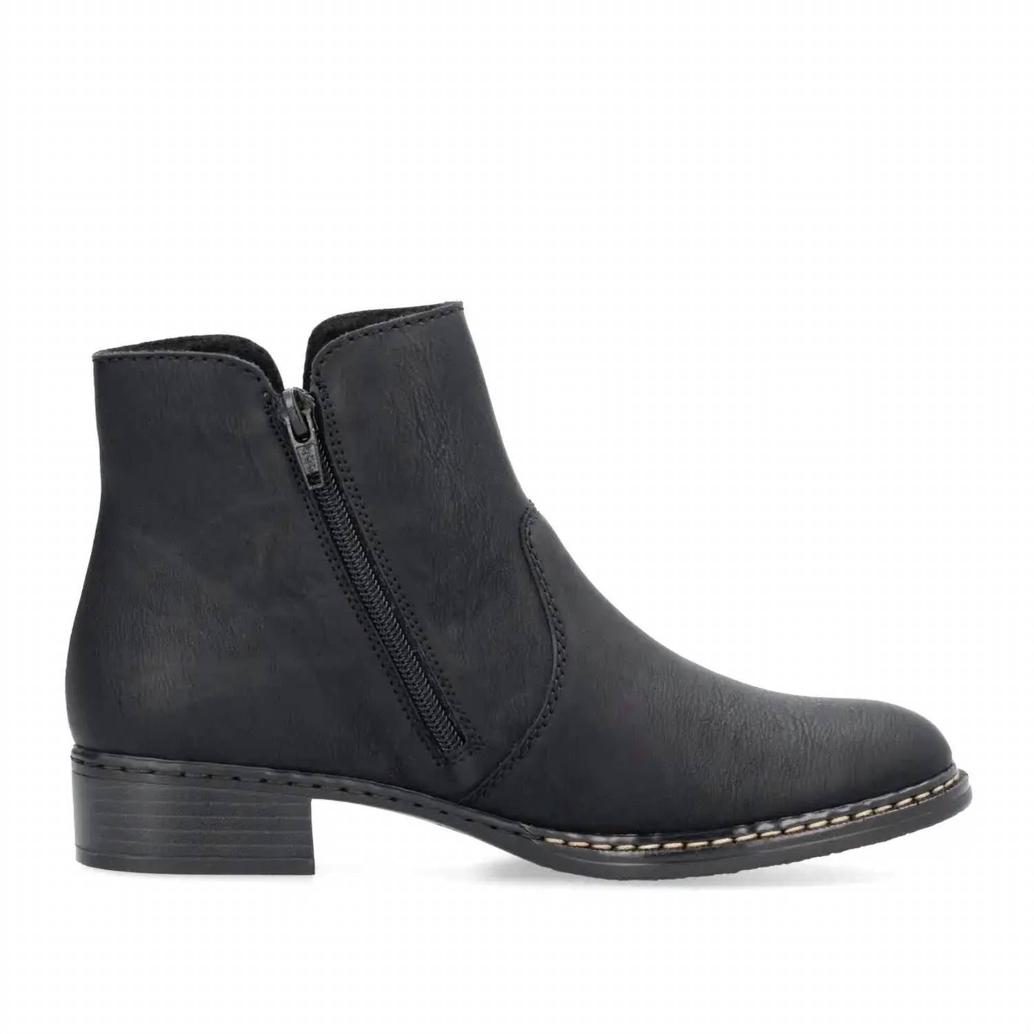 Say hello to the perfect, most versatile boot. The ankle height makes this style easily transition from day to night. Wear them with your favorite skinny jeans and tee for a more laid back look, or pair them with your favorite mini dress and jacket for a night out on the town.Experience the sophisticated charm of the Women's Conny 75 Ankle Zip Boots by RIEKER, crafted for both elegance and practicality. Featuring a schwarz/smoke synthetic upper adorned with fine decorative stitching and the brand's logo, these boots exude understated style. With a functional zipper closure for swift wear, they promise convenience on busy days. Completed with a 3.1 inch block heel, these boots sport a round toe and medium shoe width for comfort.