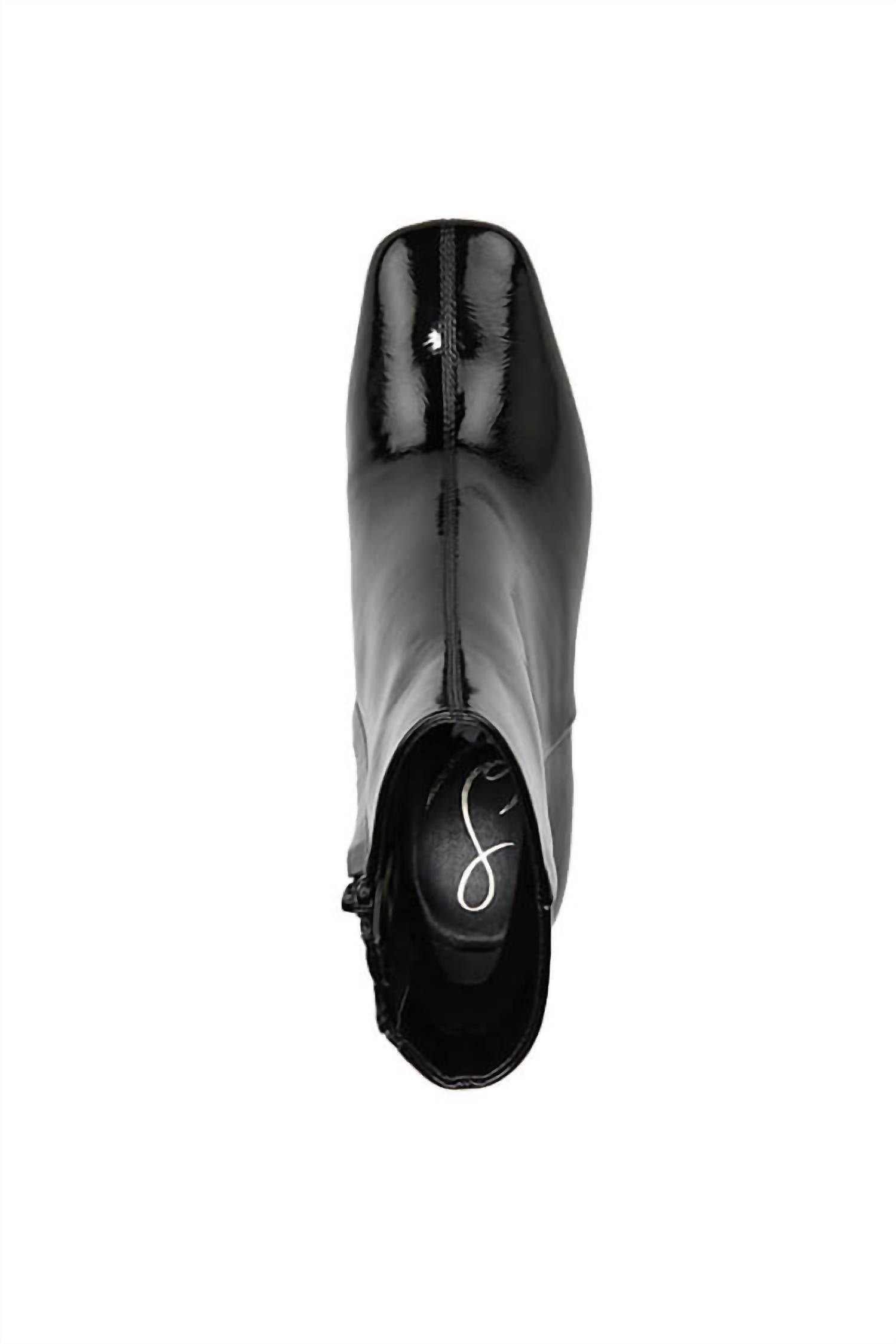 Say hello to the perfect, most versatile boot. The ankle height makes this style easily transition from day to night. Wear them with your favorite skinny jeans and tee for a more laid back look, or pair them with your favorite mini dress and jacket for a night out on the town.Step into the sophistication of the Codie Ankle Bootie by Sam Edelman, an essential for the modern wardrobe. These black patent boots feature a chic squared toe and a convenient zipper closure, set atop a stylish 3.5-inch block heel. Crafted from premium leather with a synthetic insole, they offer both elegance and comfort. With a boot shaft of 5.2 inches and a calf circumference of 10.2 inches, these ankle booties are perfect for adding a touch of flair to your evening event or workwear ensemble.