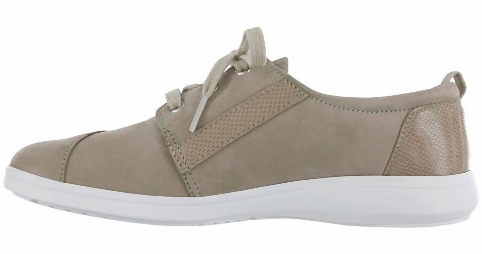 Cute, functional, and comfortable. These sneakers check all the boxes.Discover the Women's Marnie Sneaker by SAS, a perfect blend of comfort and style in chic taupe/snake. Designed with Strobel construction, these sneakers feature a cushioned upper lining and genuine leather for all-day comfort. Boasting a 1.125′ heel height, they also come with a removable footbed and SAS's TRIPAD? technology to keep you feeling great on any casual occasion. Ideal for summer and game days, these round-toe lace-ups embody a preppy trend.