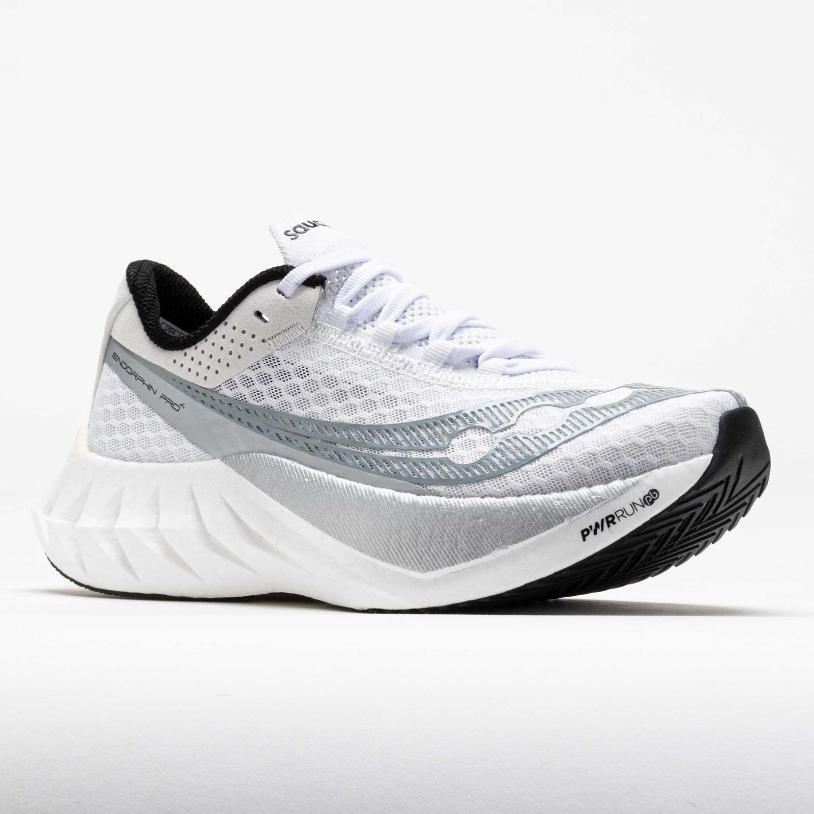 Find your race day ride in the Saucony Endorphin Pro 4! This neutral running shoe features responsive cushioning and a carbon fiber plate to propel you to the finish line. PWRRUN HG and PWRRUN PB foams in the midsole combine with a full-length carbon plate for smooth transitions. Enjoy effortless strides from the SPEEDROLL technology. while the heel liner and tongue system create a comfortable fit. Snappy and responsive. the Saucony Endorphin Pro 4 fuels your race-day drive!
