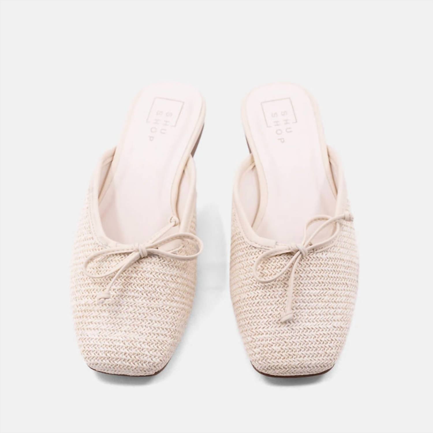 Loafers so versatile you can wear them with just about anything.Introducing the Women's Andrea Woven Slide Sandal by SHU SHOP, a superb addition to your spring wardrobe. This sandal features a beautifully textured woven upper in an elegant Bone Woven color. With a pointed toe and flat heel under 1 inch, the Andrea offers a refined yet minimalistic look perfect for vacation or Mother's Day outings. Material: Faux Leather. Shoe width: Medium. Ideal for pairing with linen pants or summer dresses for effortless warm-weather styling.