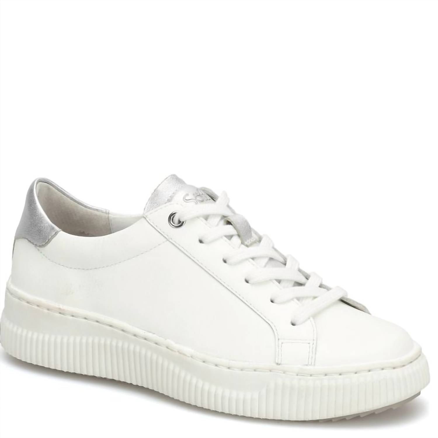 Get your daily steps in with these adorable sneakers.Elevate your casual wardrobe with the Women's Fianna Sneakers by Sofft, a striking combination of style and comfort. Crafted from luxurious full-grain, Italian, or metallic leather with suede accents, these sneakers feature a padded heel collar and a cushioned, leather-lined footbed with arch support. Designed with a lightweight and flexible TPR outsole, these sneakers provide an added 1.5-inch lift with a platform heel. The athleisure trend ensures they're perfect for travel or any summer occasion, and their round toe shape completes the effortlessly cool aesthetic.