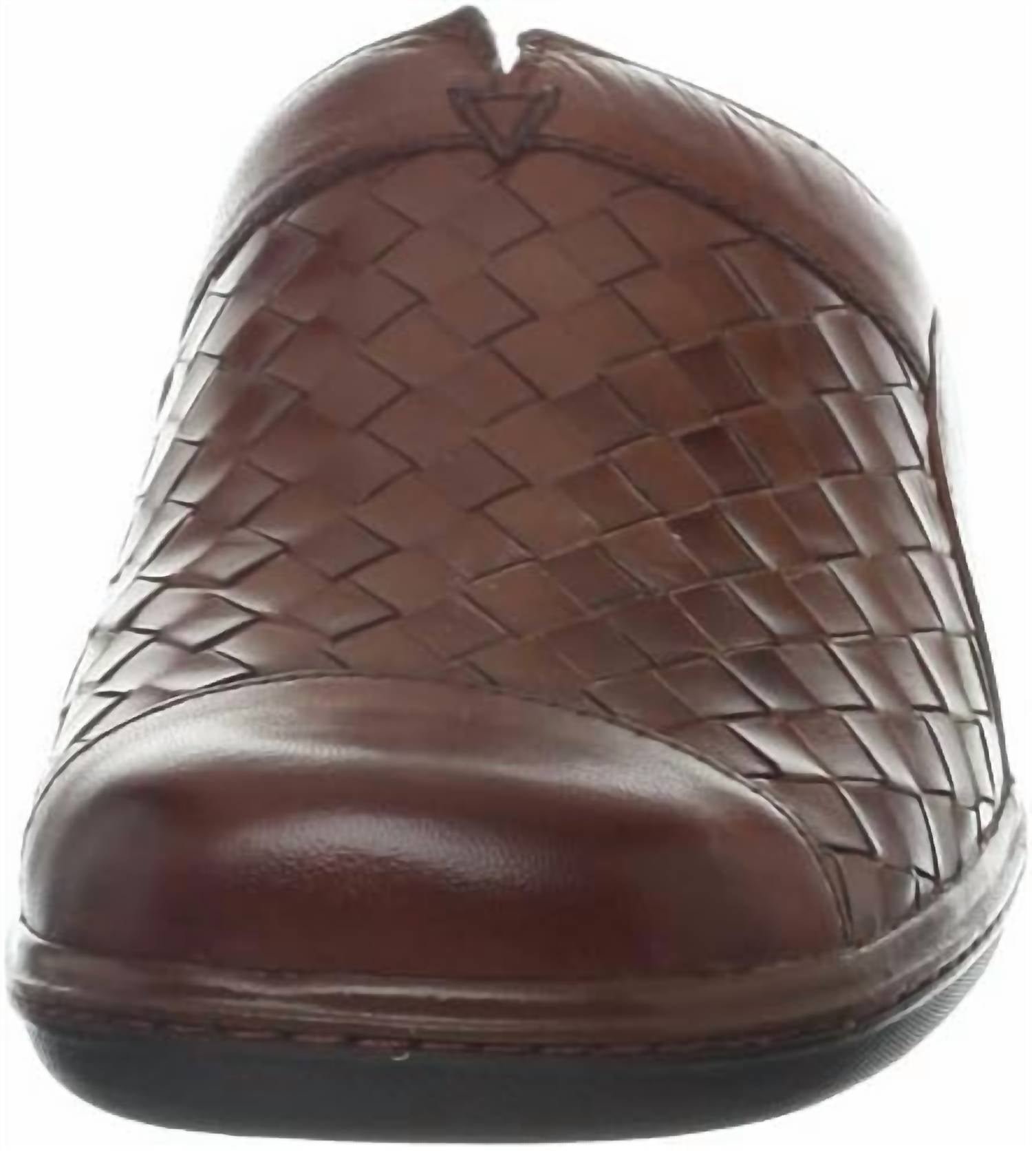 Slip them on and go! Experience all-day comfort with the Softwalk Women's San Marcos Mule, crafted in woven rust leather for a minimalist, stylish look. It features a slip-on design with a patented eggcrate footbed that ensures cushioning for every step. Designed with a round toe and platform heel, the mule boasts a low heel height of approximately 1.5 inches.