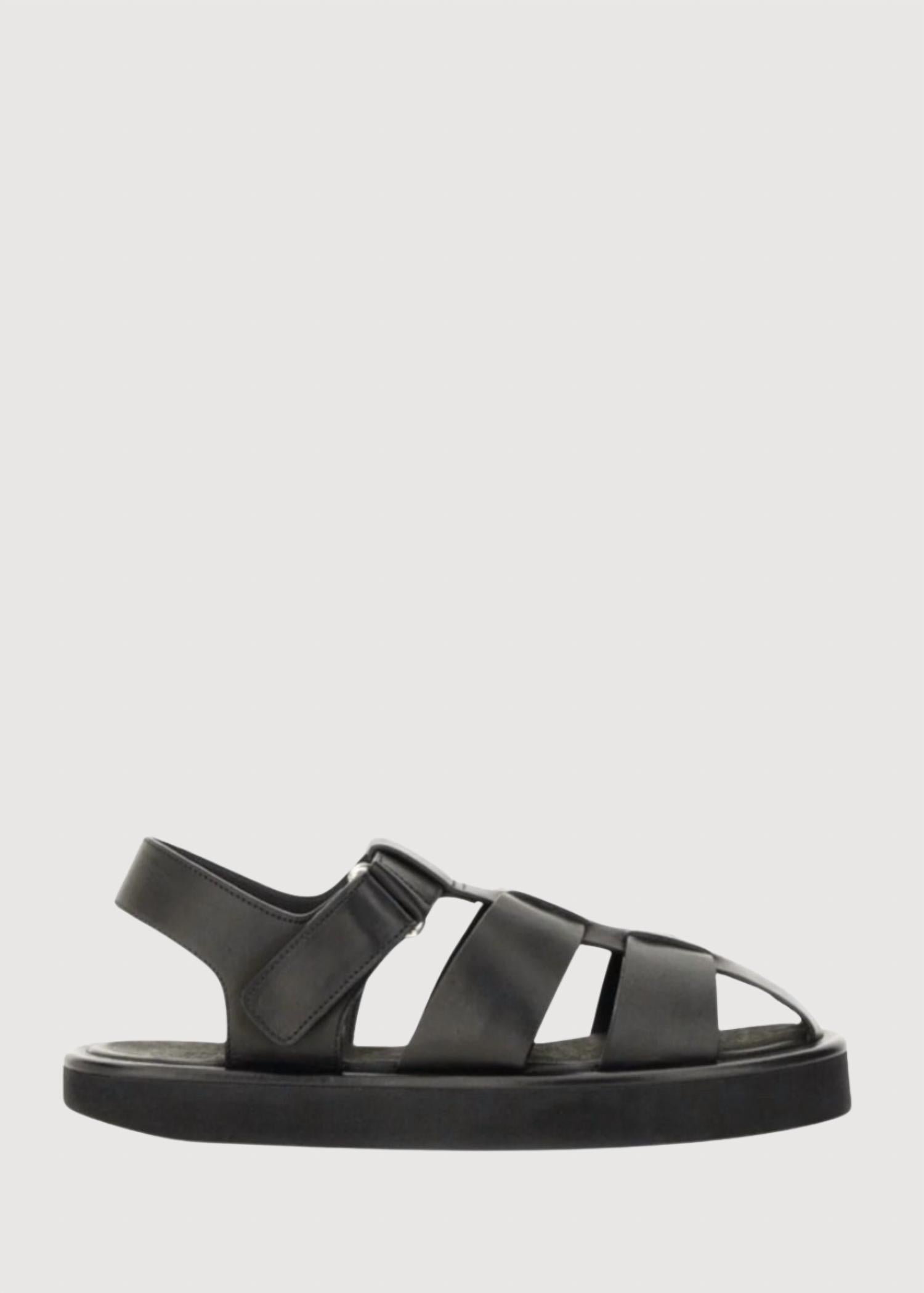Flowy dresses, cropped pants, and even jumpsuits… this sandal works with them all!Elevate your seasonal style with the Women's Fisherman Sandal from Studio Nicholson, designed for effortless elegance in Black. These sandals feature a leather construction and a Velcro fastening for a secure fit. Enjoy comfort with a cushioned footbed and superior traction thanks to the Vibram rubber outsole. Material: 100% Leather. Care: Remove dirt or oil marks with a clean cloth and use a neutral polish for upkeep. Perfect for vacation or summer outings, they boast a round toe and flat heel, embodying Boho Chic appeal.