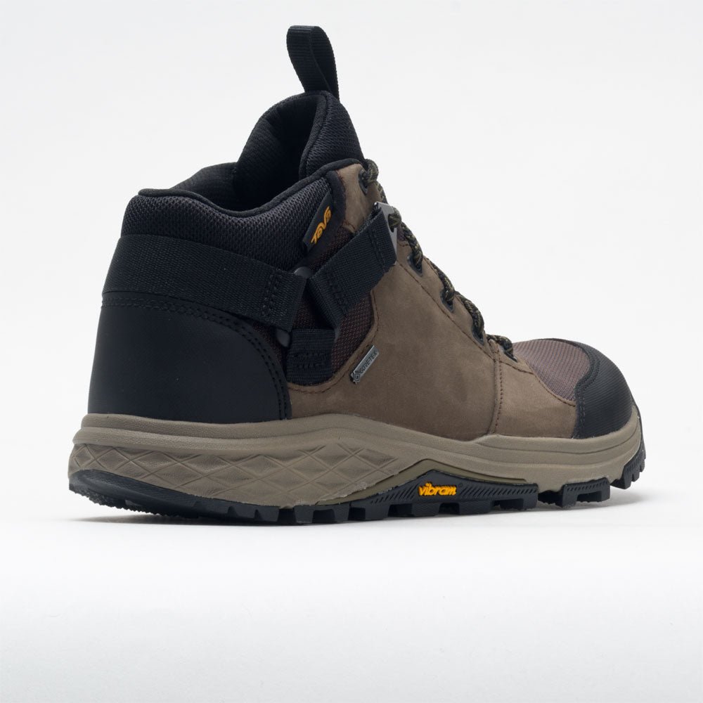 The Teva Grandview GTX provides trail-ready technology to explore the outdoors. A waterproof leather upper and GORE-TEX bootie seal out the elements to keep you dry during hikes. Roam through rugged terrain under the Vibram? Megagrip rubber outsole. The universal heel-lock system secures your foot in place. while a wide toe box reduces pressure on downhill treks. Wherever the path leads. follow it comfortably in the Teva Grandview GTX!