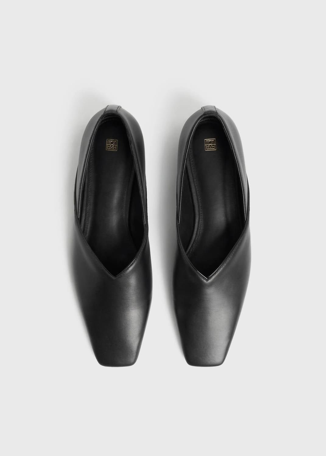 A preppy yet feminine take on the classic loafer.Discover the Women's The Everyday Square Toe Flats by TOTEME, a timeless nod to 90s fashion. Crafted with a nappa leather upper in elegant black, these flats are designed with a chic square toe and polished patent leather piping. The slipper flat features a comfortable low heel measuring between 1 1/4′ to 2′ and includes a cushioned leather insole for all-day comfort. Ideal for a New Year's Eve dinner party, these Italian-sized flats ensure sophistication with every step.