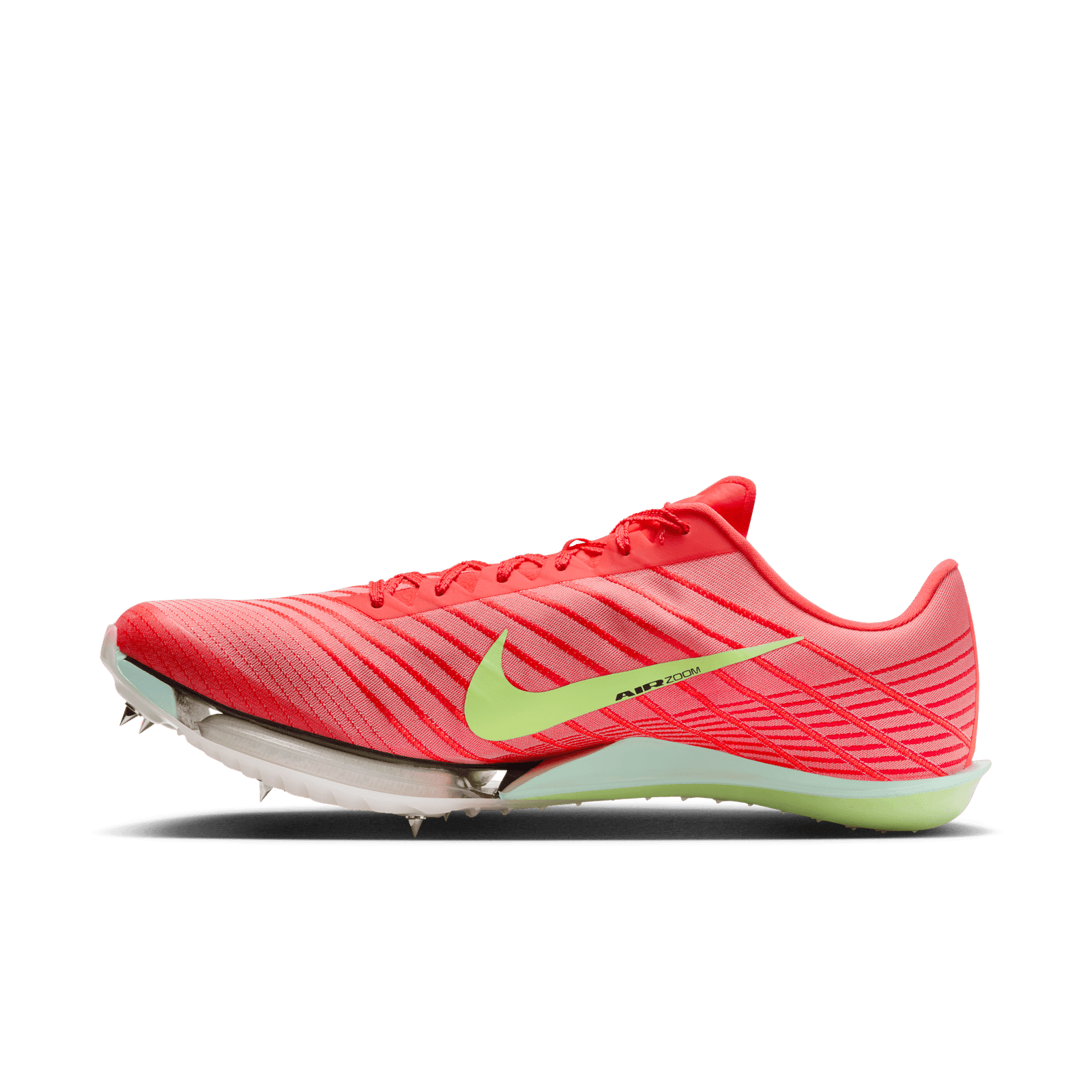 Fit for the world's fastest, the Maxfly 2 is back in the starting blocks. Designed for the 100 meters to 400 meters (hurdle events too), it combines an ultra-aggressive feel with the responsiveness of an Air Zoom unit to propel the speediest sprinters on the planet. We updated the base and upper from the previous iteration to help optimize the Air Zoom unit's speed. You also get improved stability and control on both straightaways and turns as you hightail it to the tape.