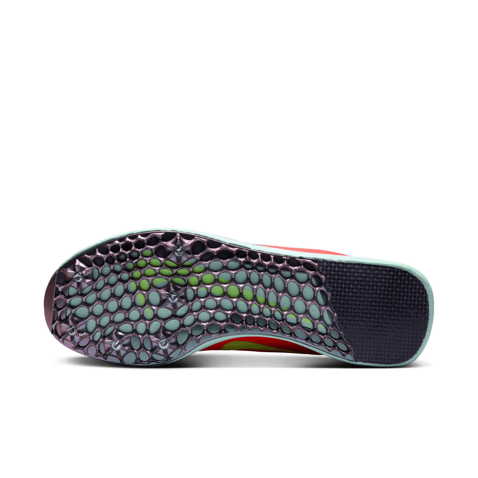 Generative outsole has six spikes for lightweight and durable traction.
