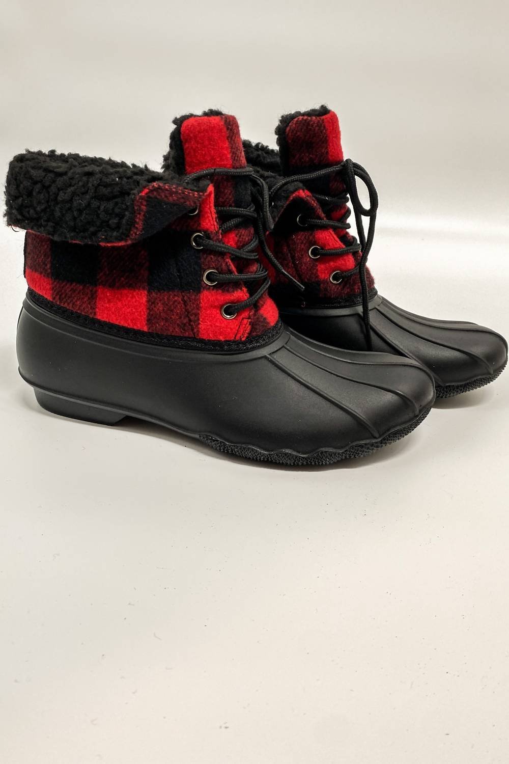 Say hello to the perfect, most versatile boot. The ankle height makes this style easily transition from day to night. Wear them with your favorite skinny jeans and tee for a more laid back look, or pair them with your favorite mini dress and jacket for a night out on the town.Meet the Women's Duck Boots by Very G, a must-have addition to your fall wardrobe in a stylish buffalo plaid. Featuring a round toe and a pretty quilted textile upper, these boots offer a neutral color that pairs perfectly with any outfit. Equipped with a PVC sole, these ankle booties are water-resistant and have a cushioned insole to keep your feet comfortable during all your errands. Ideal for the Christmas season, these boots are true to size and designed for women seeking both style and functionality.