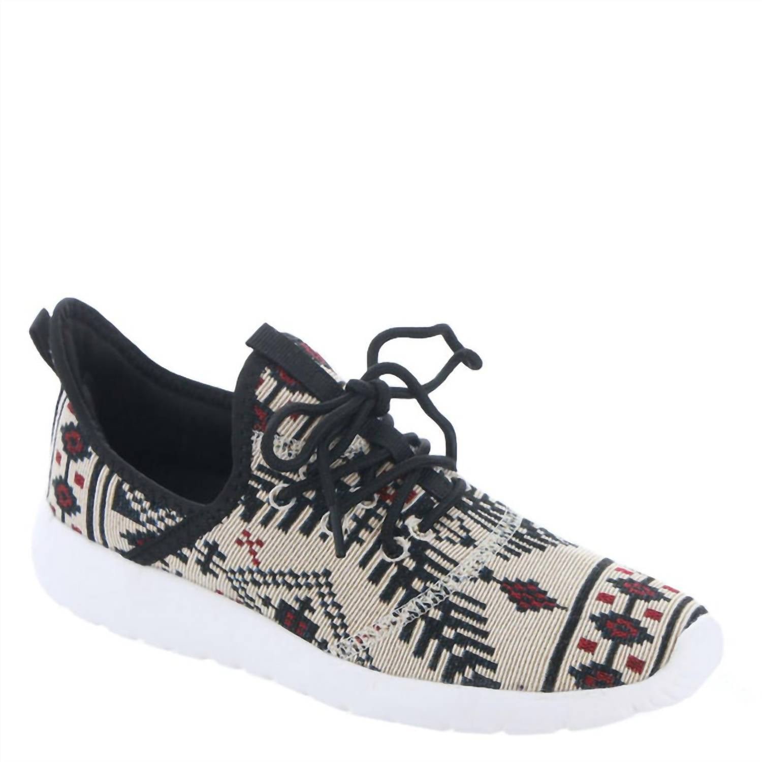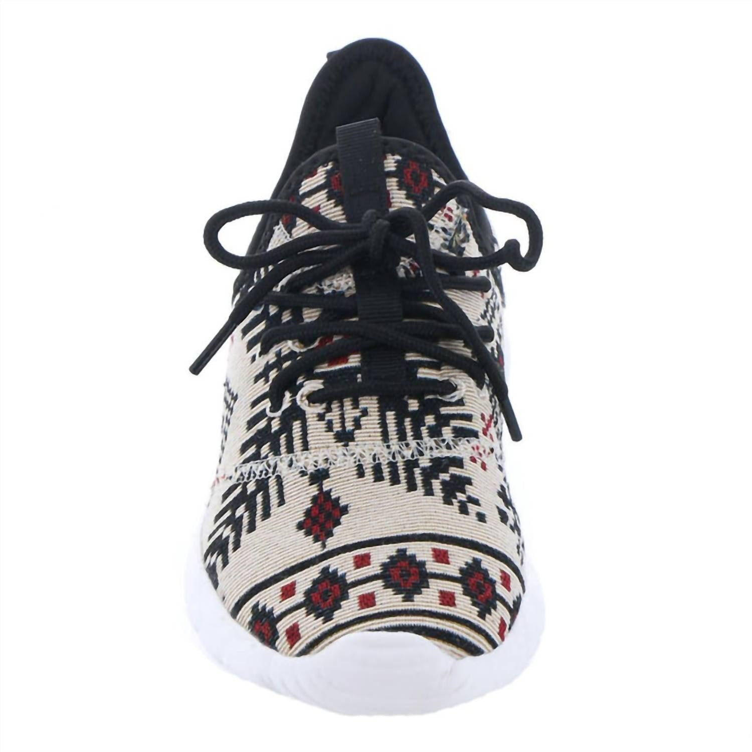 Get your daily steps in with these adorable sneakers.Featuring authentic aztec print and a comfortable tennis shoe design, padded insole, white rubber outsole. Knit fabric material. Lace up.