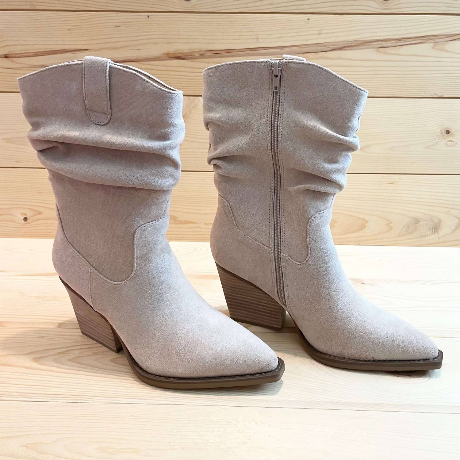 Say hello to the perfect, most versatile boot. The ankle height makes this style easily transition from day to night. Wear them with your favorite skinny jeans and tee for a more laid back look, or pair them with your favorite mini dress and jacket for a night out on the town.Meet the 'Morocco' Light Taupe Bootie by Very G, an ideal choice for your next outing. These women's ankle boots feature a block heel measuring 3.5 inches, perfect for a stylish Western look. With a pointed toe and layered ankle design, they seamlessly blend comfort and trendiness, thanks to their cushioned sole. Crafted for a true-to-size fit, these booties are ready to enhance your fall adventures.