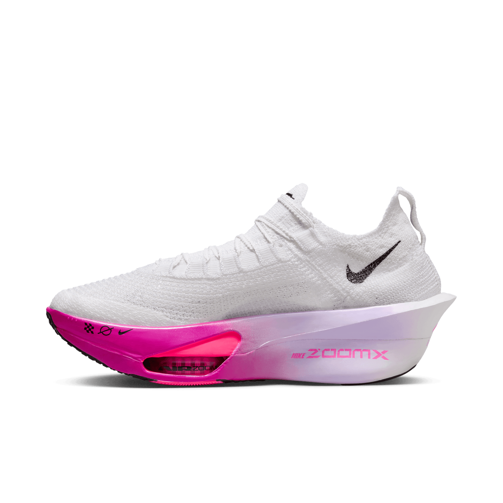 Fine-tuned for marathon speed, the Alphafly 3 helps push you beyond what you thought possible. Three innovative technologies power your run: A double dose of Air Zoom units helps launch you into your next step; a full-length carbon fiber plate helps propel you forward with ease; and a heel-to-toe ZoomX foam midsole helps keep you fresh from start to 26.2. Time to leave your old personal records in the dust.