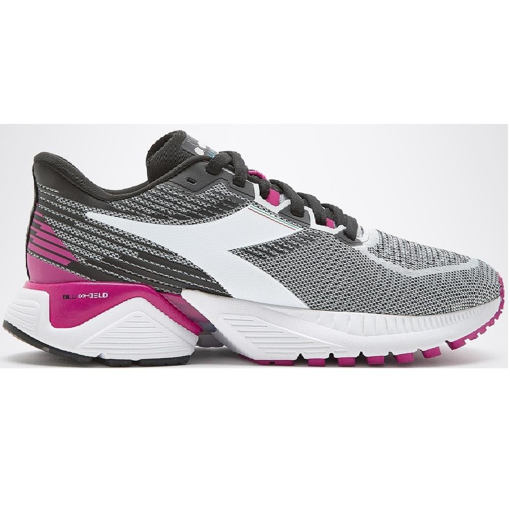 Ready to run? Whatever your style with the Mythos Blushield Vigore, you'll know no limits. These technical women's running trainers have been made with new diadora DD Anima technology which guarantees the most cushioning and even more powerful thrust.? You'll feel in safe hands thanks to the Blushield technology of the midsole over the entire foot.? Then comes in the?blown flexoft in the front while the heel area is made from the special wear-resistant duratech 5000 compound. Born to run like you.