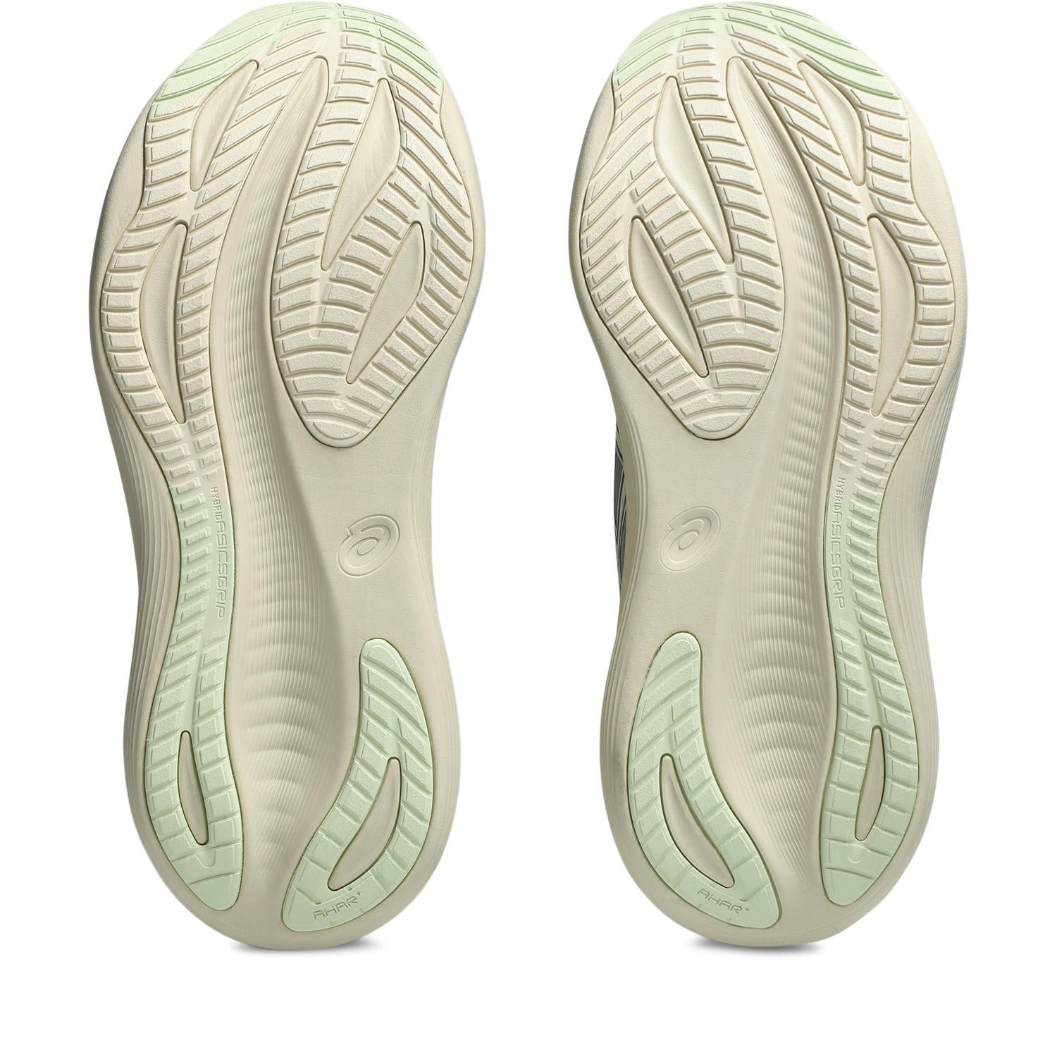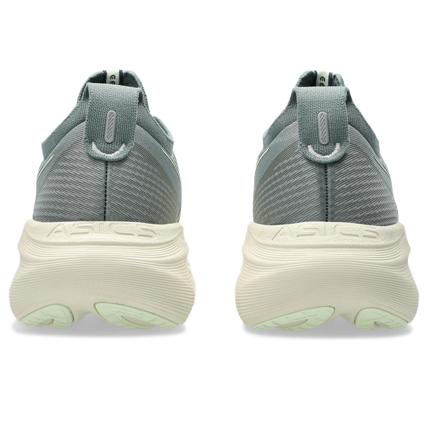 The GEL-NIMBUS? 27 shoe's soft cushioning properties help you feel like you're landing on clouds. This design is revamped to help create a softer and smoother running experience.?A soft engineered jacquard mesh upper comfortably wraps your foot while supplying advanced ventilation. Additionally, the knit tongue and collar help provide a soft and supportive feel.?By using FF BLAST? PLUS ECO cushioning, this trainer creates a lighter and softer cushioning experience.?Lastly, HYBRID ASICSGRIP? outsole rubber helps create better traction, improved softness, and advanced durability.