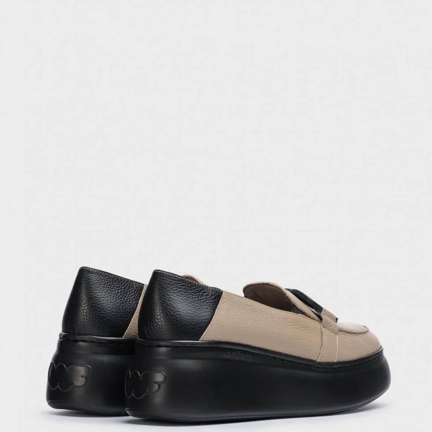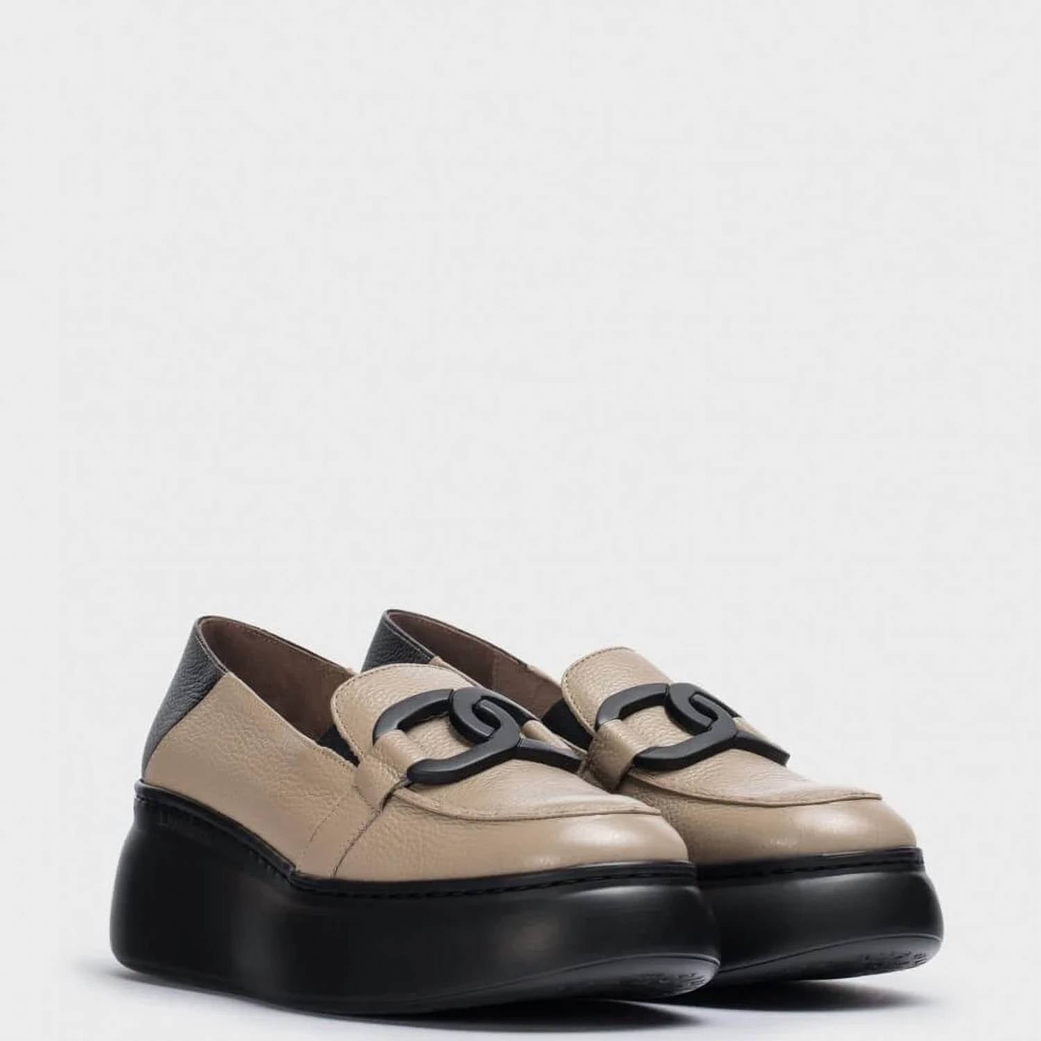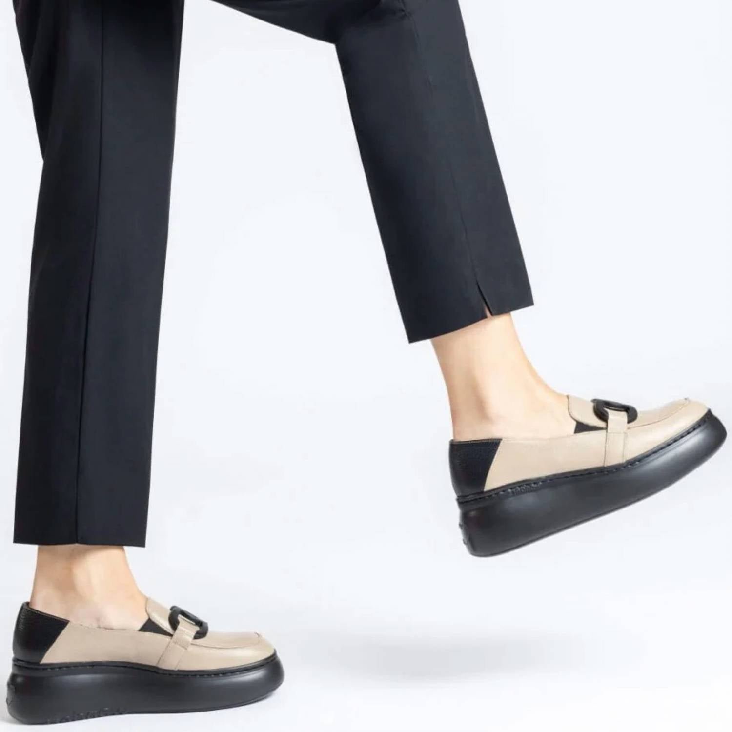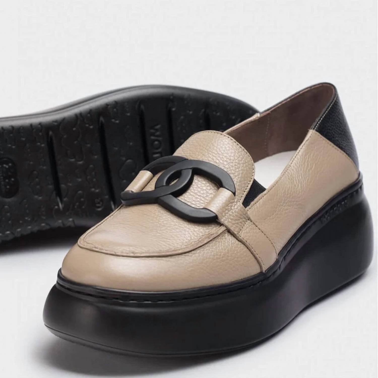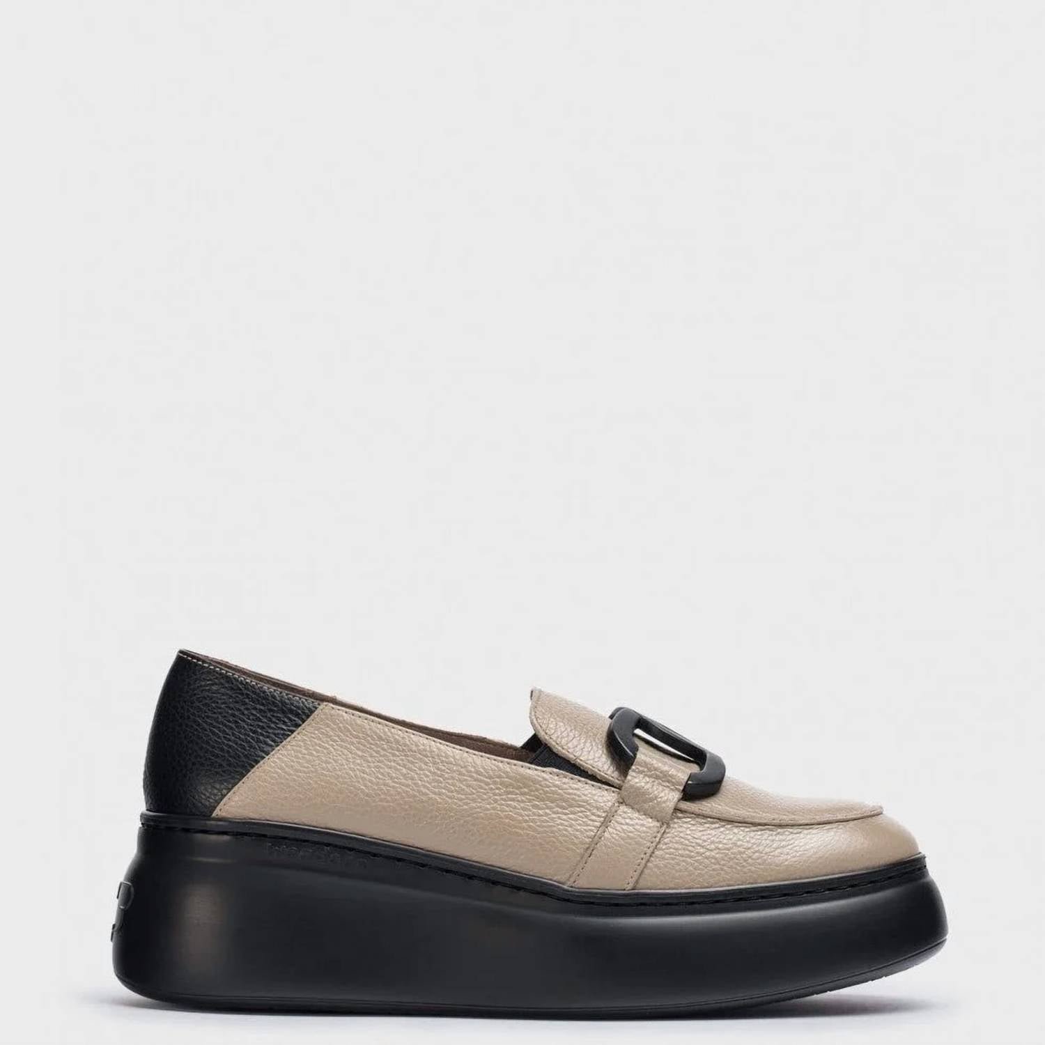 Loafers so versatile you can wear them with just about anything.Step into style and comfort with the Women's Begin Loafer by Wonders, a must-have addition to any wardrobe. Featuring a chic taupe-hued leather composition, these slip-on loafers are elevated with a contrasting black platform heel at a fashionable 2.36 inches. This women's footwear seamlessly blends designer-inspired elegance with everyday wearability, accentuated by its iconic chain link detailing. Crafted for the sophisticated woman, these loafers are perfect for back-to-school occasions and beyond, offering a sleek and versatile round toe.