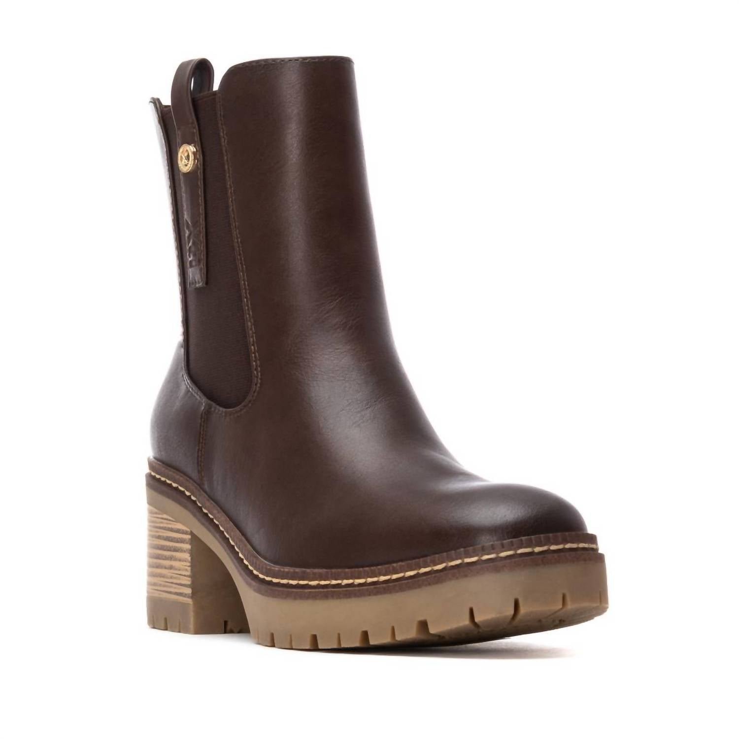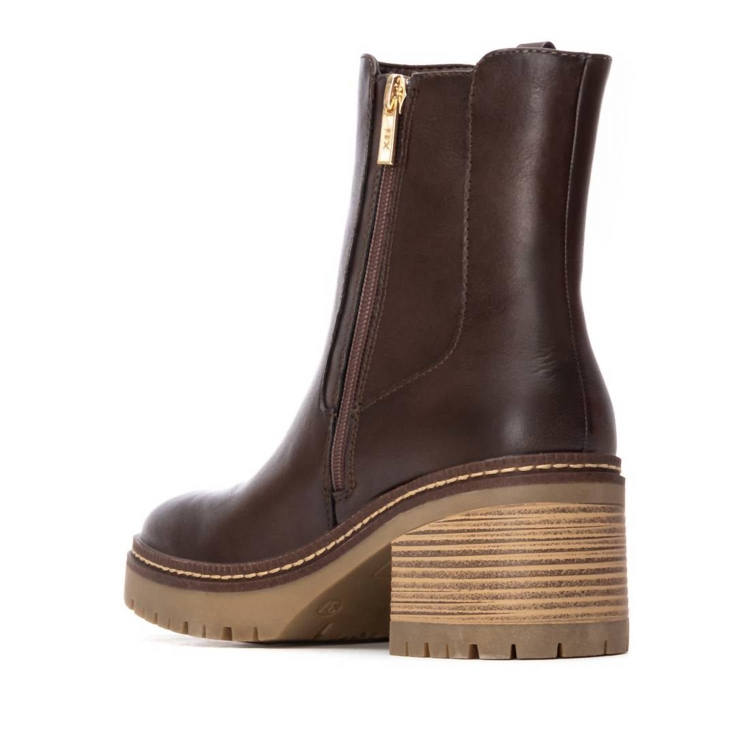 Say hello to the perfect, most versatile boot. The ankle height makes this style easily transition from day to night. Wear them with your favorite skinny jeans and tee for a more laid back look, or pair them with your favorite mini dress and jacket for a night out on the town.Experience a blend of style and comfort with the Xti Women's 144456 Ankle Booties in a rich brown leather. Designed with expert craftsmanship, these summer booties feature a minimalist aesthetic perfect for any dinner party or Thanksgiving occasion. The block heel and round toe shape allow for confident steps during your casual outings or special occasions. Treat yourself to the finest materials with Xti, ensuring you never compromise on quality.