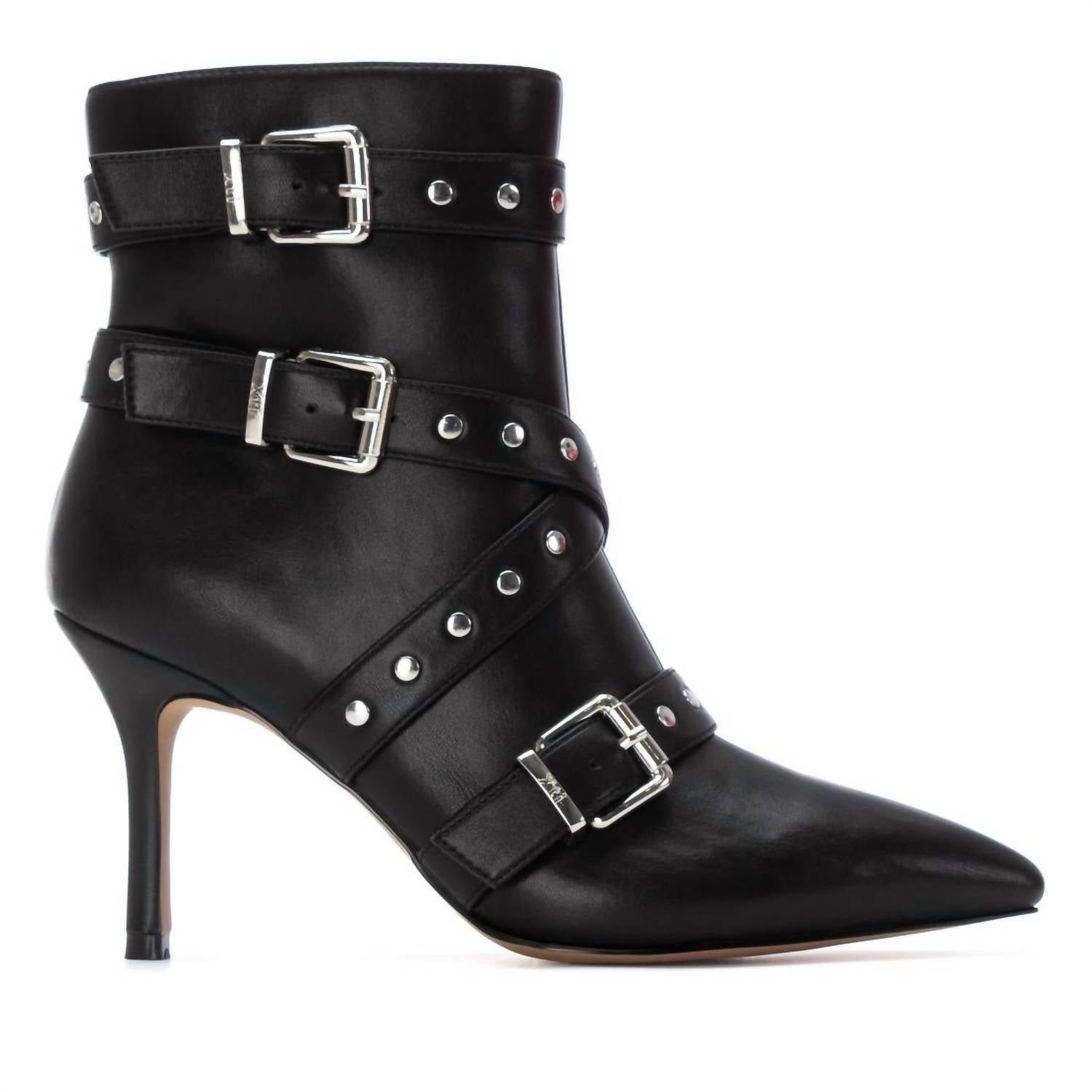 Say hello to the perfect, most versatile boot. The ankle height makes this style easily transition from day to night. Wear them with your favorite skinny jeans and tee for a more laid back look, or pair them with your favorite mini dress and jacket for a night out on the town.Introducing the Xti Women's 144649 Heel Booties, perfect for evening events and Fall occasions. Crafted from quality leather, these black ankle boots feature a stylish pointed toe and a sleek stiletto heel, offering a high heel height of 3 1/4′ and up. Embrace the trend of quiet luxury with these chic and comfortable booties. Ideal for New Year's Eve celebrations, they seamlessly blend timeless style with modern appeal.