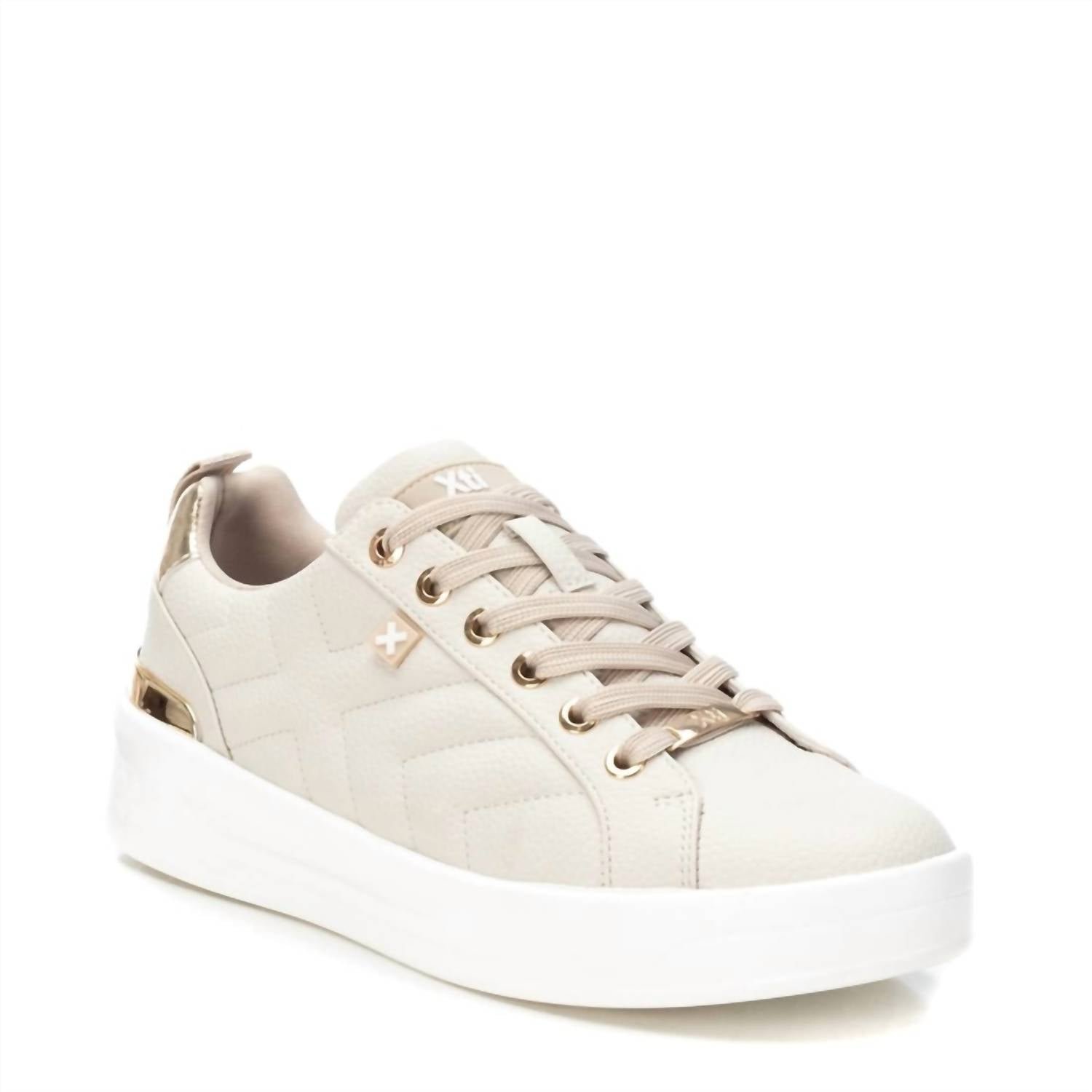 Get your daily steps in with these adorable sneakers.This Faux Leather Sneakers are crafted from high-quality material that mimics genuine leather, featuring an adjustable lace closure for a snug fit and metallic details for modern flair. The 4 cm thick rubber sole provides superior traction and comfort, while the removable insole ensures customizable support; they are certified vegan by PETA for an ethical choice.