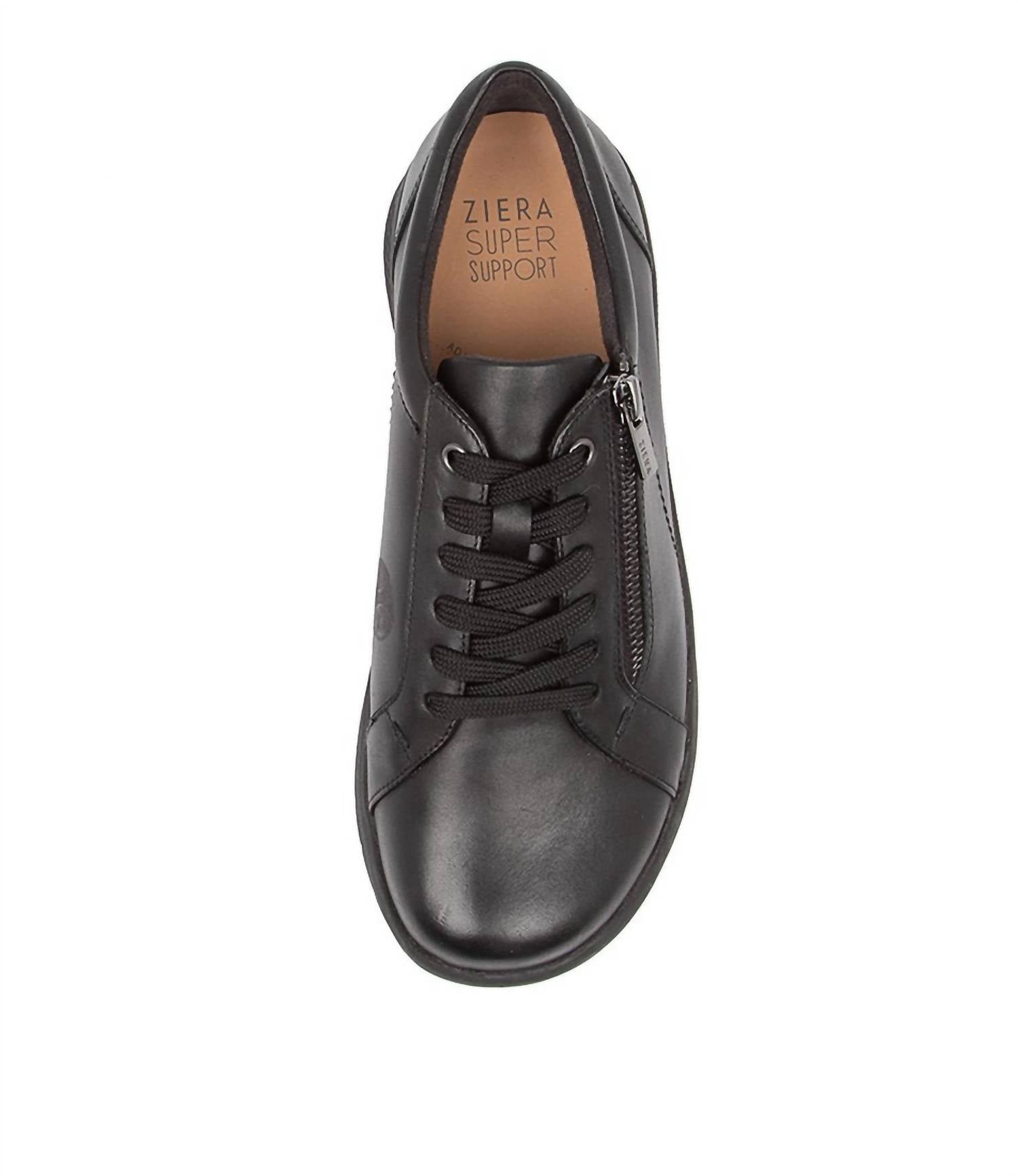 Get your daily steps in with these adorable sneakers.Introducing the Women's Solar Sneakers by Ziera, designed for ultimate comfort and style in sleek black leather. Featuring a platform heel with a height of 4cm, these sneakers include an extra wide fit and forefoot inserts for an adjustable fit. The removable Super Support footbed and high arch support ensure superior comfort, while the slip-resistant sole provides stability. These round toe sneakers are perfect for those seeking minimalist style during the winter season, ideal for back-to-school occasions.
